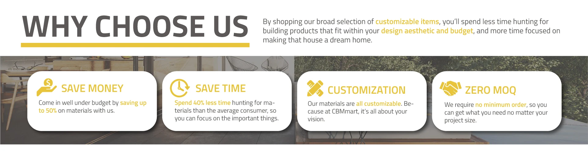 Produk utama: Kabinet dapur; Tangga, pintu kayu; Jendela alumunium; Furnitur